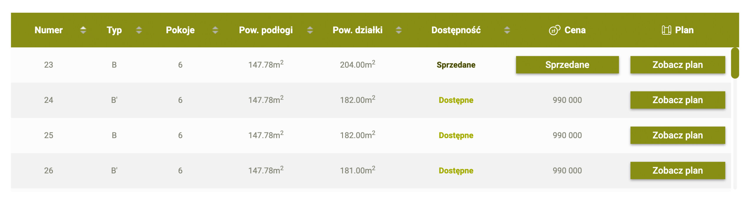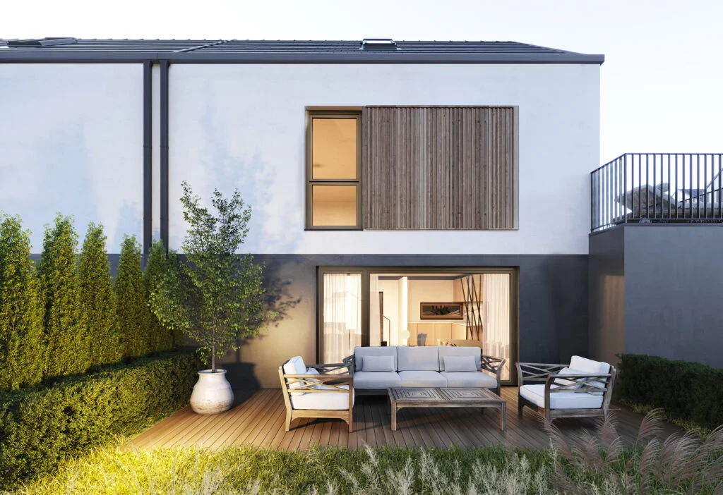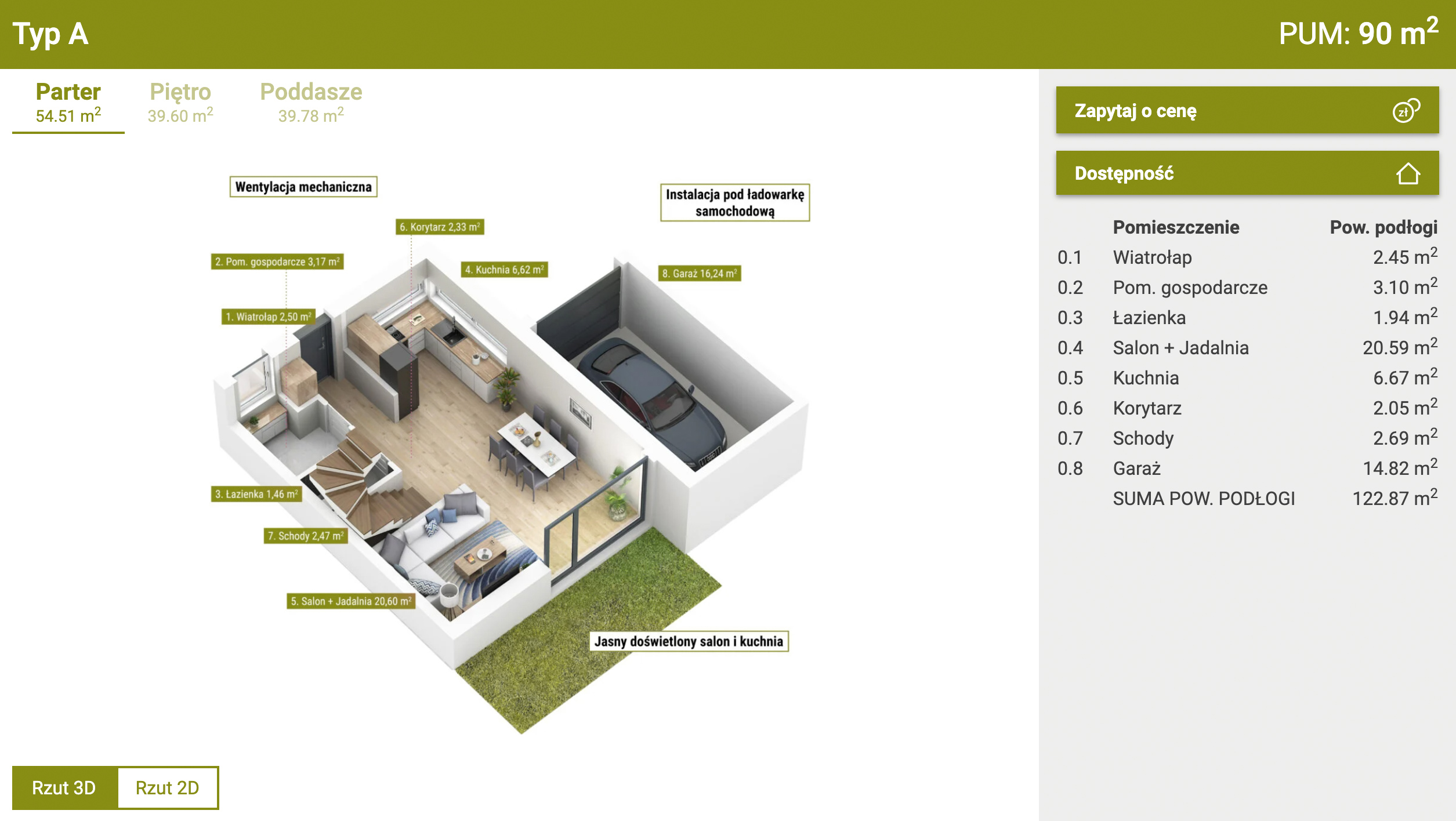 Domy dostępne są w dwóch wariantach: o powierzchni 118 m² oraz 90 m² – każdy z lokali ma również garaż o powierzchni 15 m² i cechuje się funkcjonalnym układem pomieszczeń.